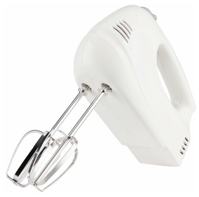 Type: manual, power: 125 W, attachments: whisk, hooks for kneading dough, body material: plastic, design features: attachment release button, number of speeds: 5