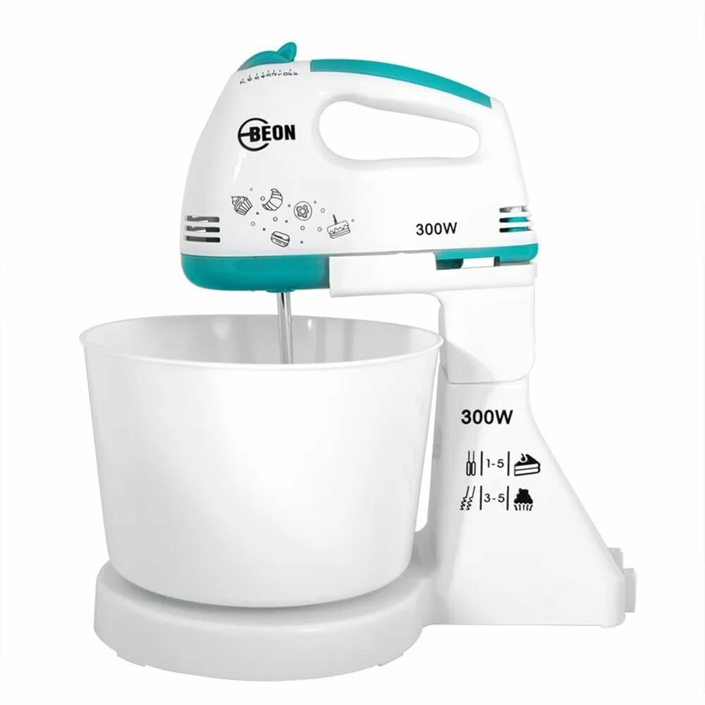 Type: stationary, power: 300 W, attachments: whisk for whipping, hooks for kneading dough, bowl material: plastic, bowl volume: 2 l, body material: plastic, additional modes: turbo mode, design features