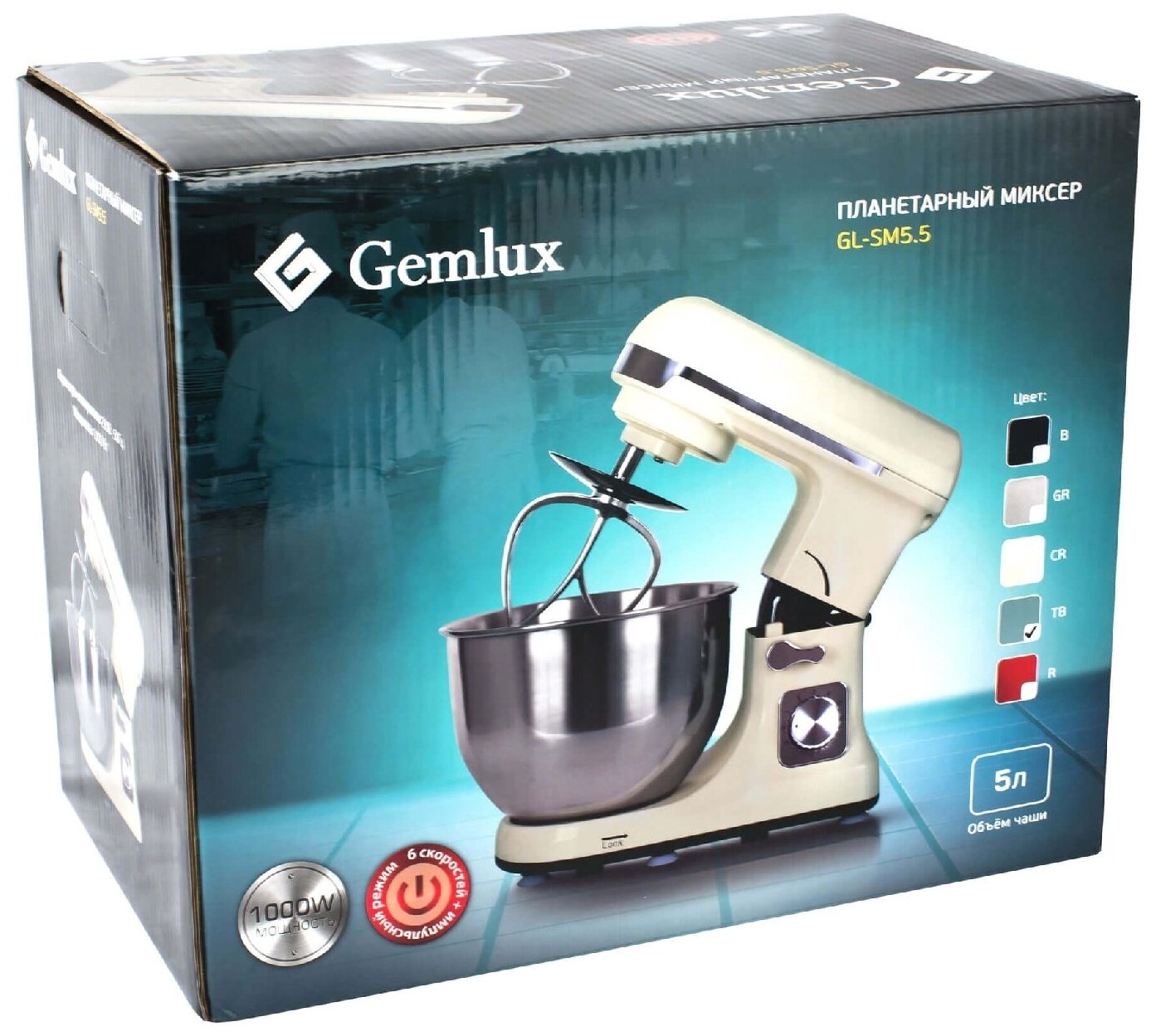 Type: planetary stationary, power: 1000 W, attachments: whisk for whipping, hooks for kneading dough, attachment for making puree, bowl material: stainless steel, body material: plastic, additional