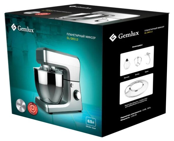 Type: planetary stationary, power: 1100 W, attachments: whisk for whipping, hooks for kneading dough, bowl material: stainless steel, bowl volume: 5 l, body material: plastic, additional modes: pulse �