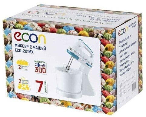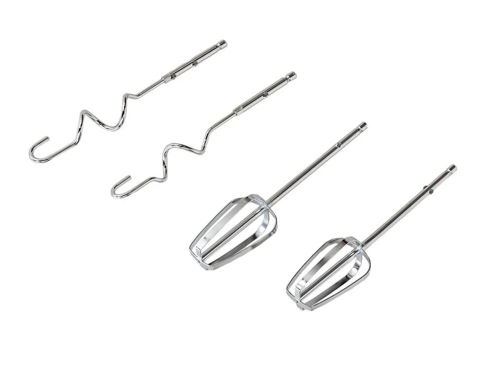 Attachments for beating eggs and cream, for kneading heavy dough; Includes mixer, 2 liter plastic bowl, attachments, instruction manual, warranty card