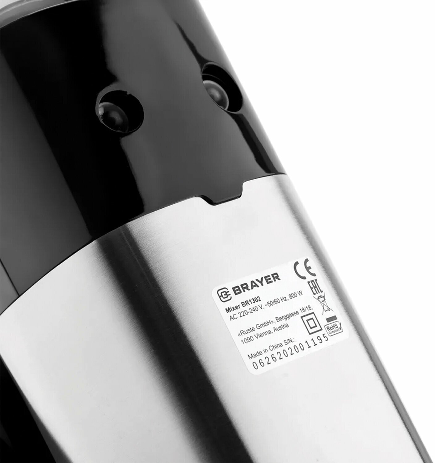 Type: manual, power: 800 W, attachments: whisk for whipping, hooks for kneading dough, body material: metal, plastic, additional modes: turbo mode, design features: attachment release button, number