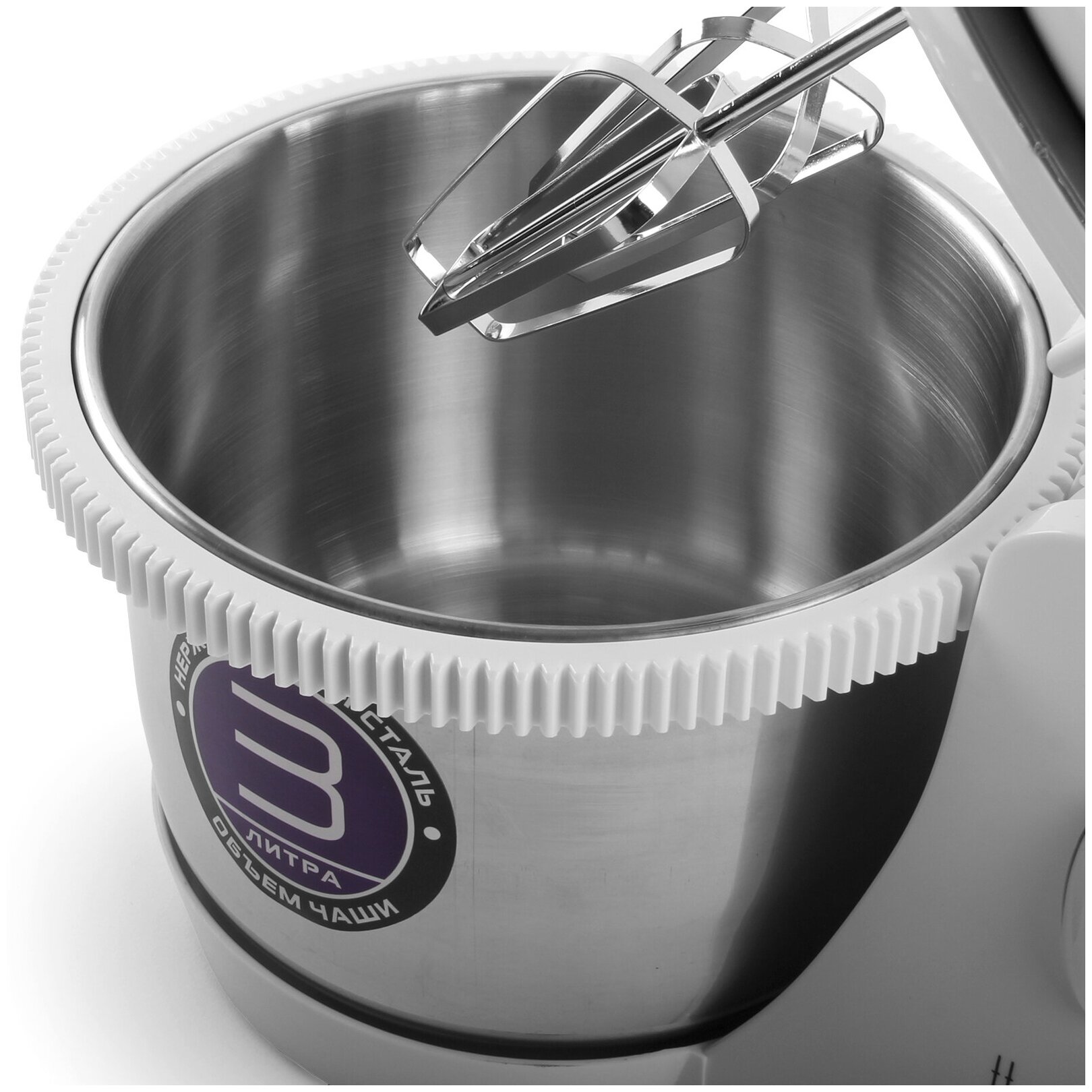 Type: stationary, power: 400 W, bowl material: stainless steel, bowl volume: 3 l, body material: plastic, design features: bowl rotation, nozzle release button, number of speeds: 3