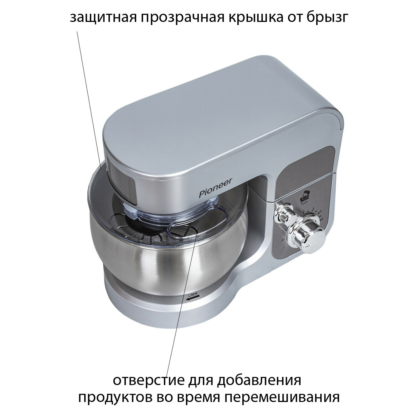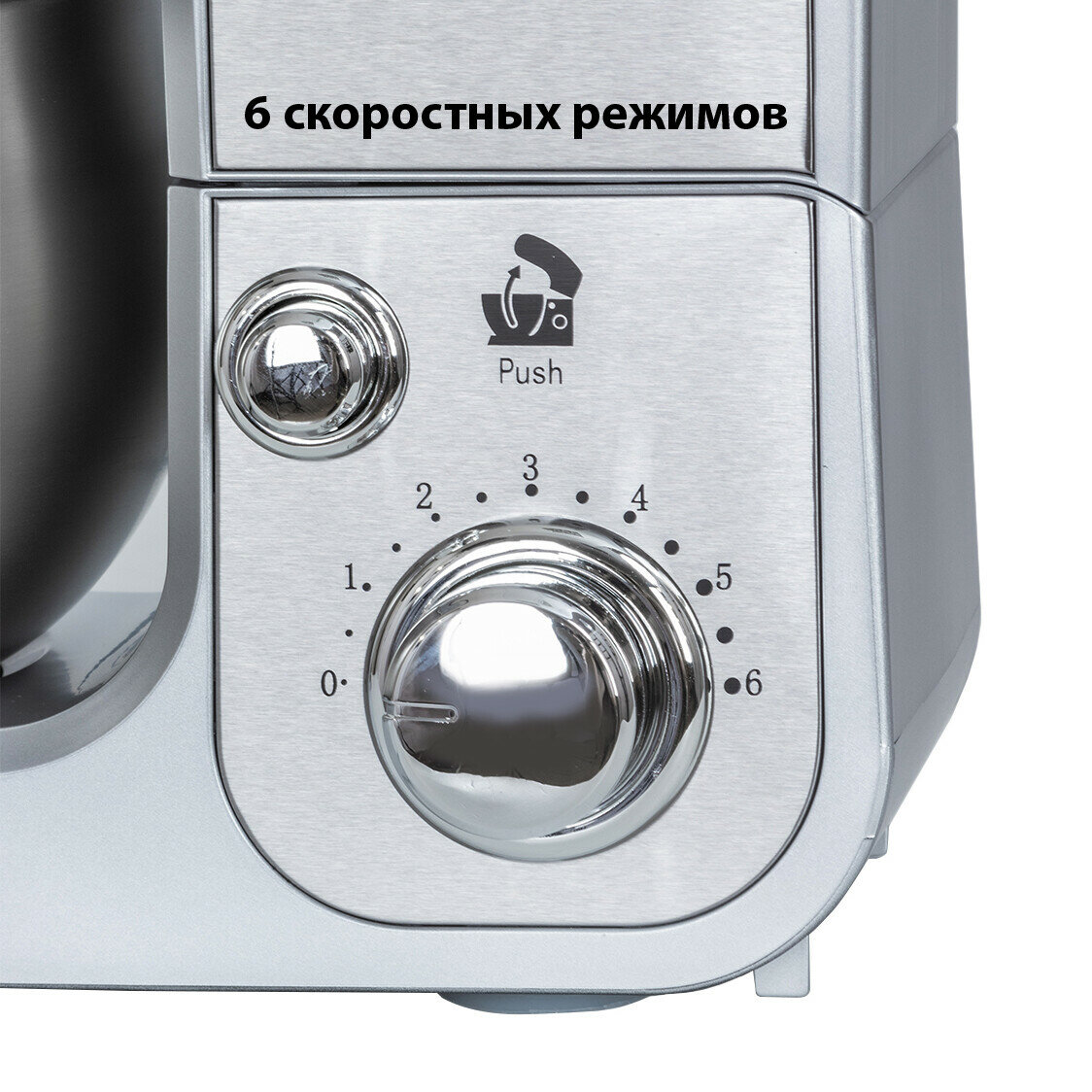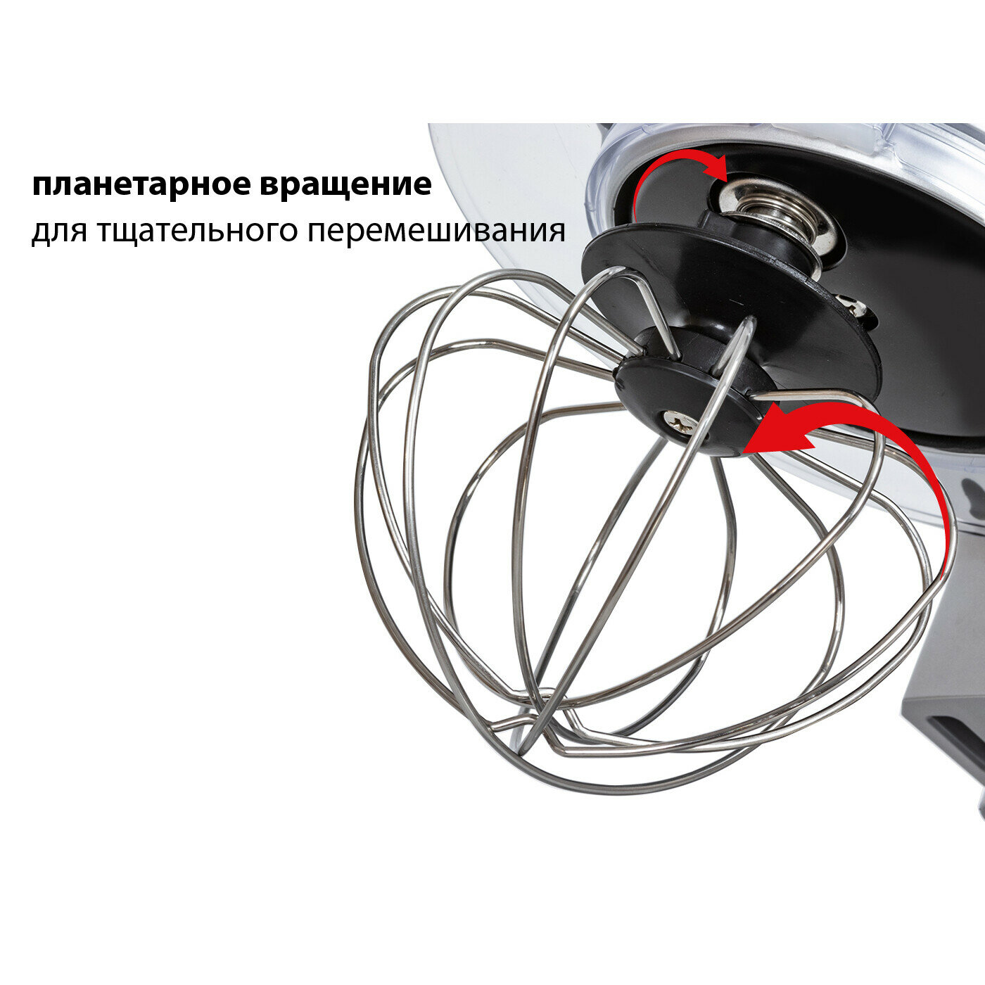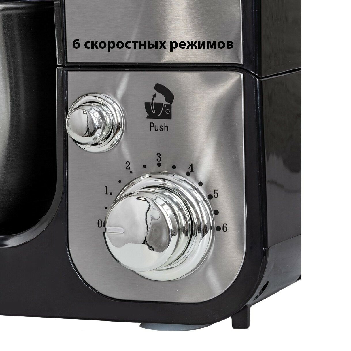 Type: planetary stationary, power: 1100 W, attachments: whisk for whipping, hooks for kneading dough, bowl material: stainless steel, bowl volume: 5 l, body material: plastic, additional modes: pulse �