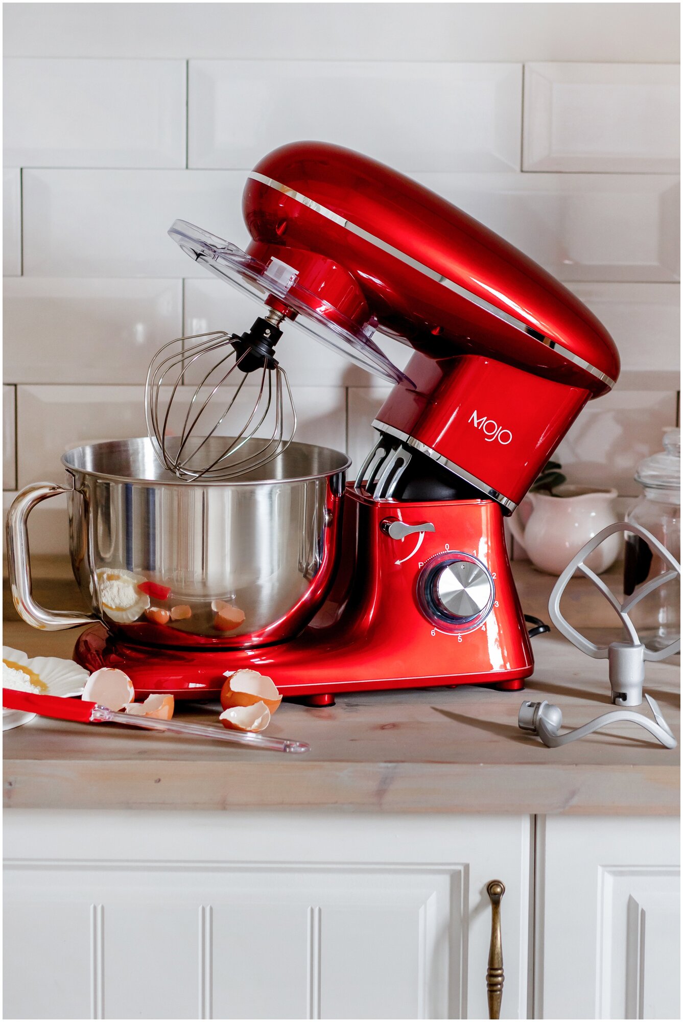 Type: planetary stationary, power: 1100 W, attachments: whisk for whipping, hooks for kneading dough, bowl material: stainless steel, bowl volume: 5 l, body material: plastic, additional modes: pulse �