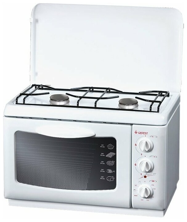 Gas-electric model: electric oven + 2 gas burners; number of burners: 2; number of baking trays included: 1