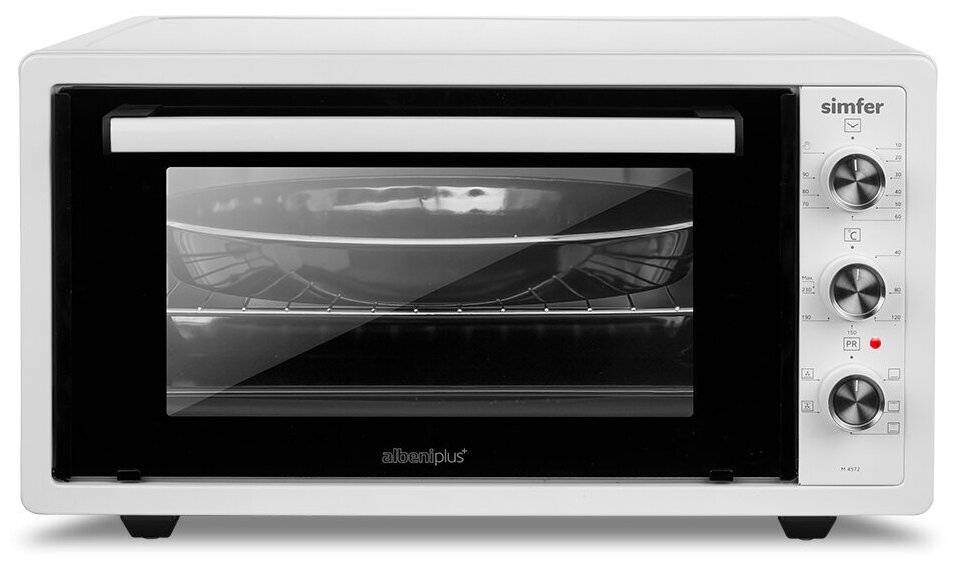Modes: top heating, top+bottom heating, convection, bottom heating, chamber volume: 45 l, features: internal lighting, timer, control: mechanical, equipment: round baking sheet, baking sheet, grid, maximum