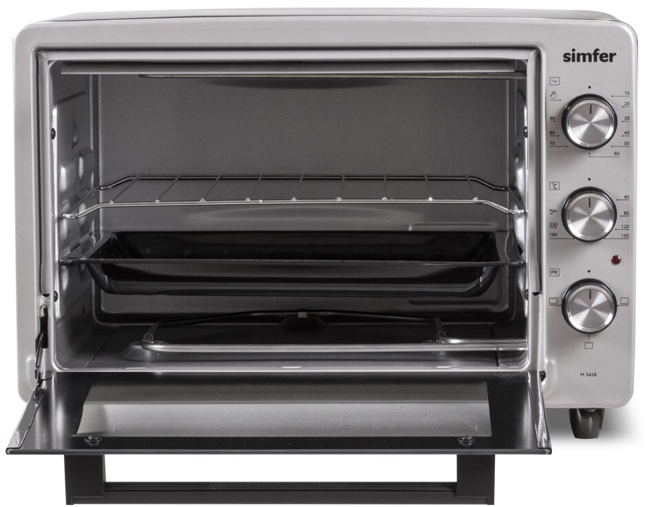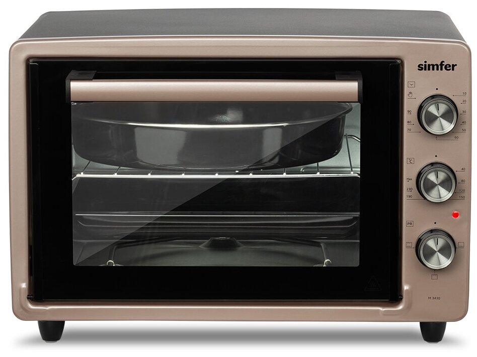 Modes: top heating, top + bottom heating, bottom heating, chamber volume: 34 l, features: timer, control: mechanical, equipment: round baking sheet, baking sheet, grid, maximum power consumption: 1300