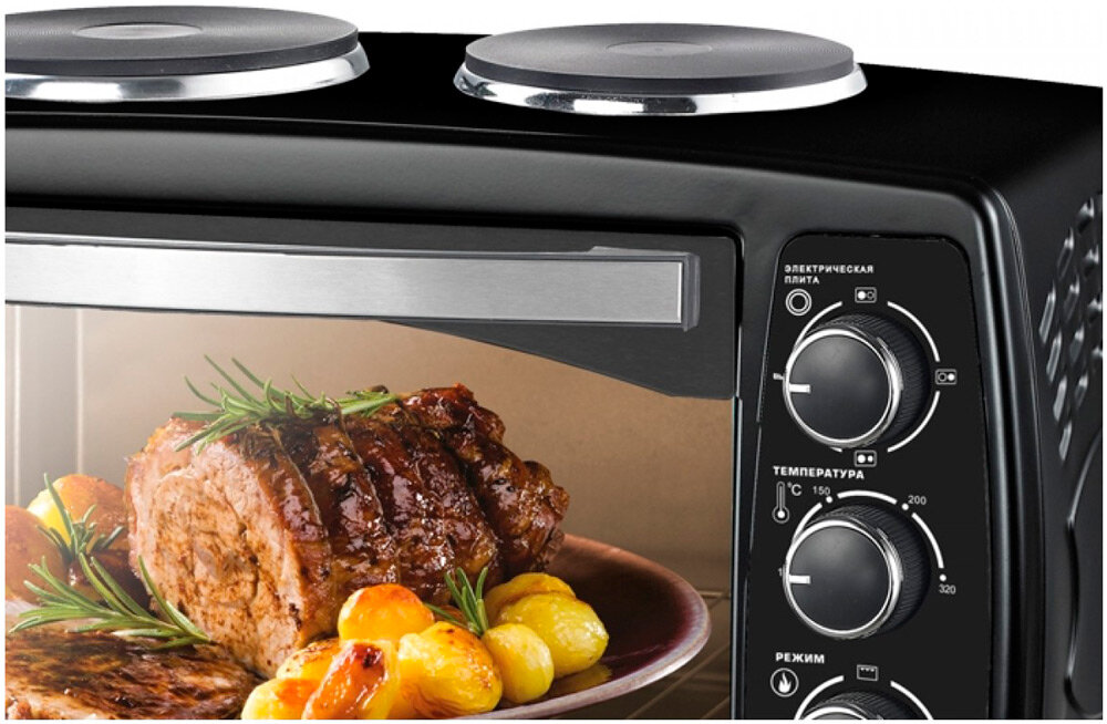 Modes: top heating, top+bottom heating, bottom heating, chamber volume: 42 l, features: hob, timer, control: mechanical, equipment: holder for baking sheet/grid, baking sheet, grid, width
