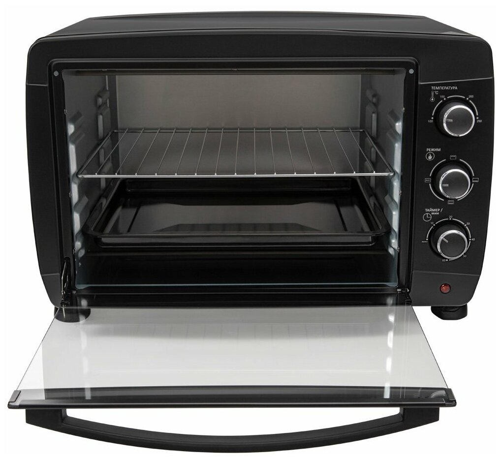 Contents: electric oven, grill grate 1 pc., baking sheet 1 pc., handle for the baking sheet 1 pc., instruction manual