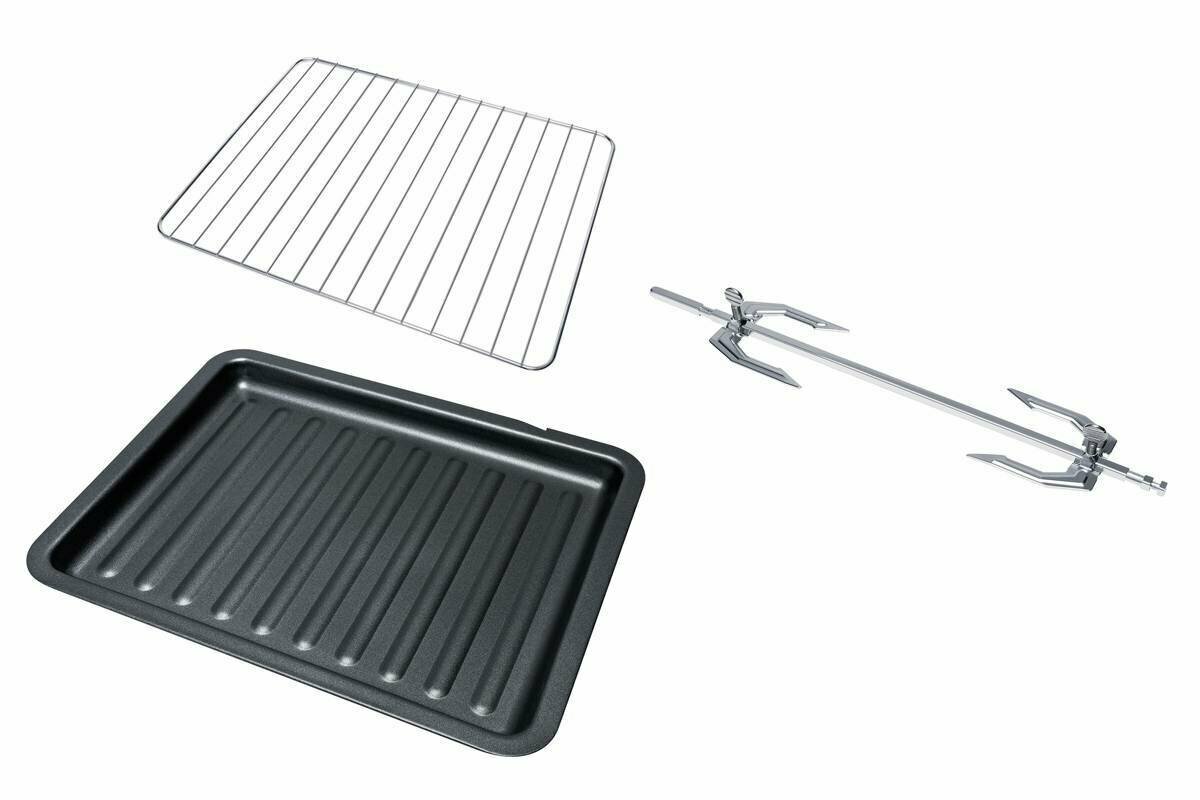 Spit, crumb tray, baking tray, wire rack