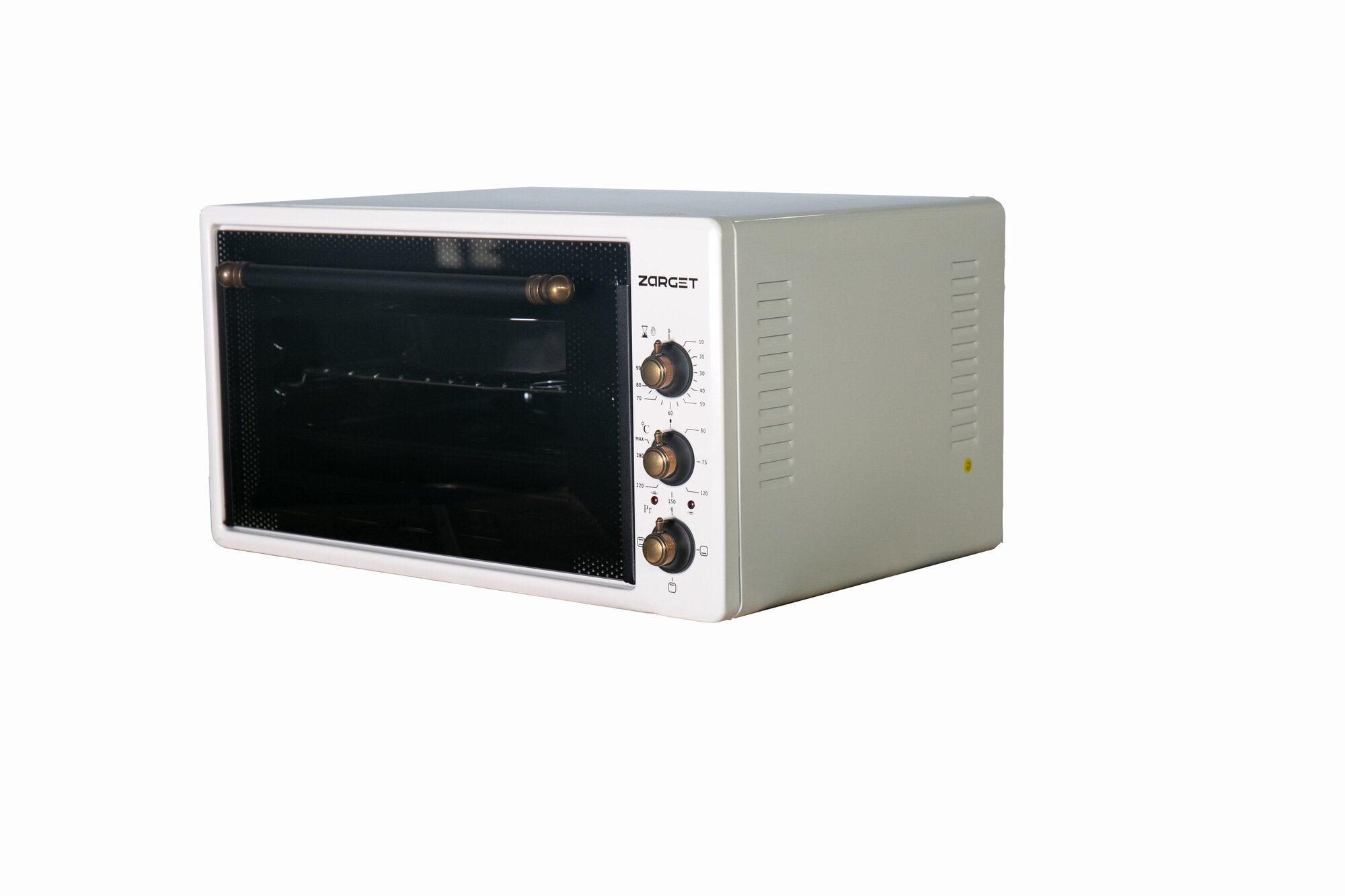 Modes: top heating, top + bottom heating, bottom heating, chamber volume: 45 l, features: internal lighting, timer, control: mechanical, equipment: round baking sheet, baking sheet, wire rack, width: 60.50 cm, depth