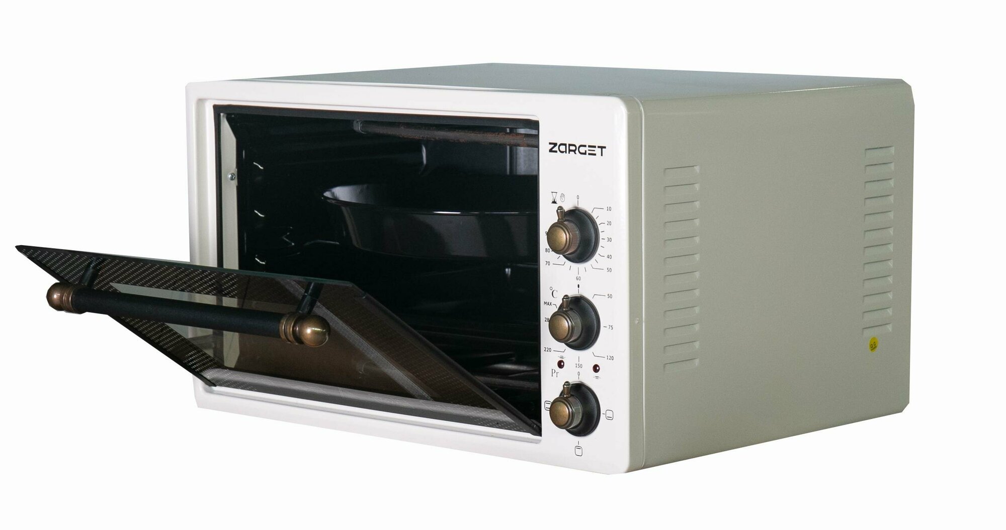 Modes: top heating, top + bottom heating, bottom heating, chamber volume: 36 l, features: timer, control: mechanical, equipment: round baking sheet, baking sheet, wire rack, width: 51.70 cm, depth: 42.50 cm, height: 32 s