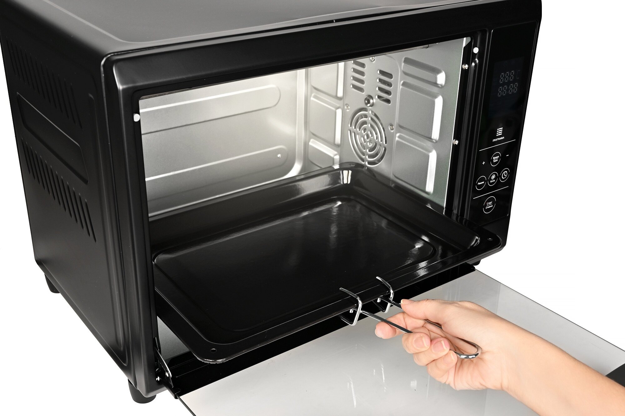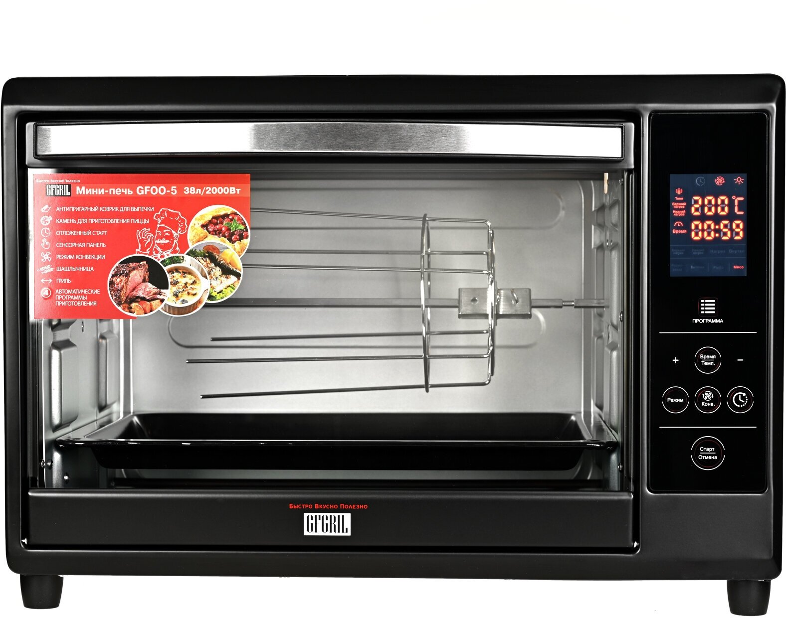 Modes: automatic cooking programs, top heating, top + bottom heating, convection, bottom heating, maintaining temperature, defrosting, chamber volume: 38 l, features: internal lighting, display, with