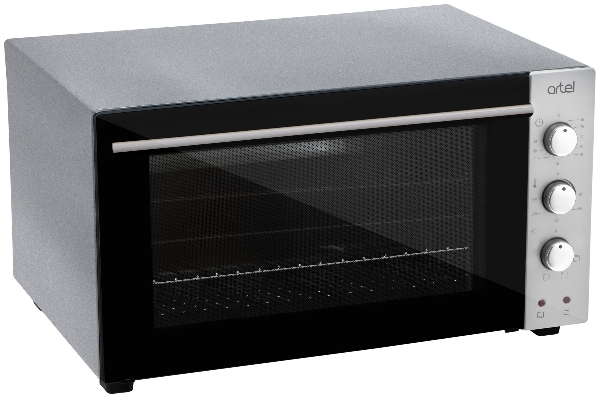 Modes: top heating, top + bottom heating, bottom heating, chamber volume: 42 l, features: timer, control: mechanical, equipment: round baking sheet, baking sheet, wire rack, width: 59 cm, depth: 47 cm, height: 34 cm , T