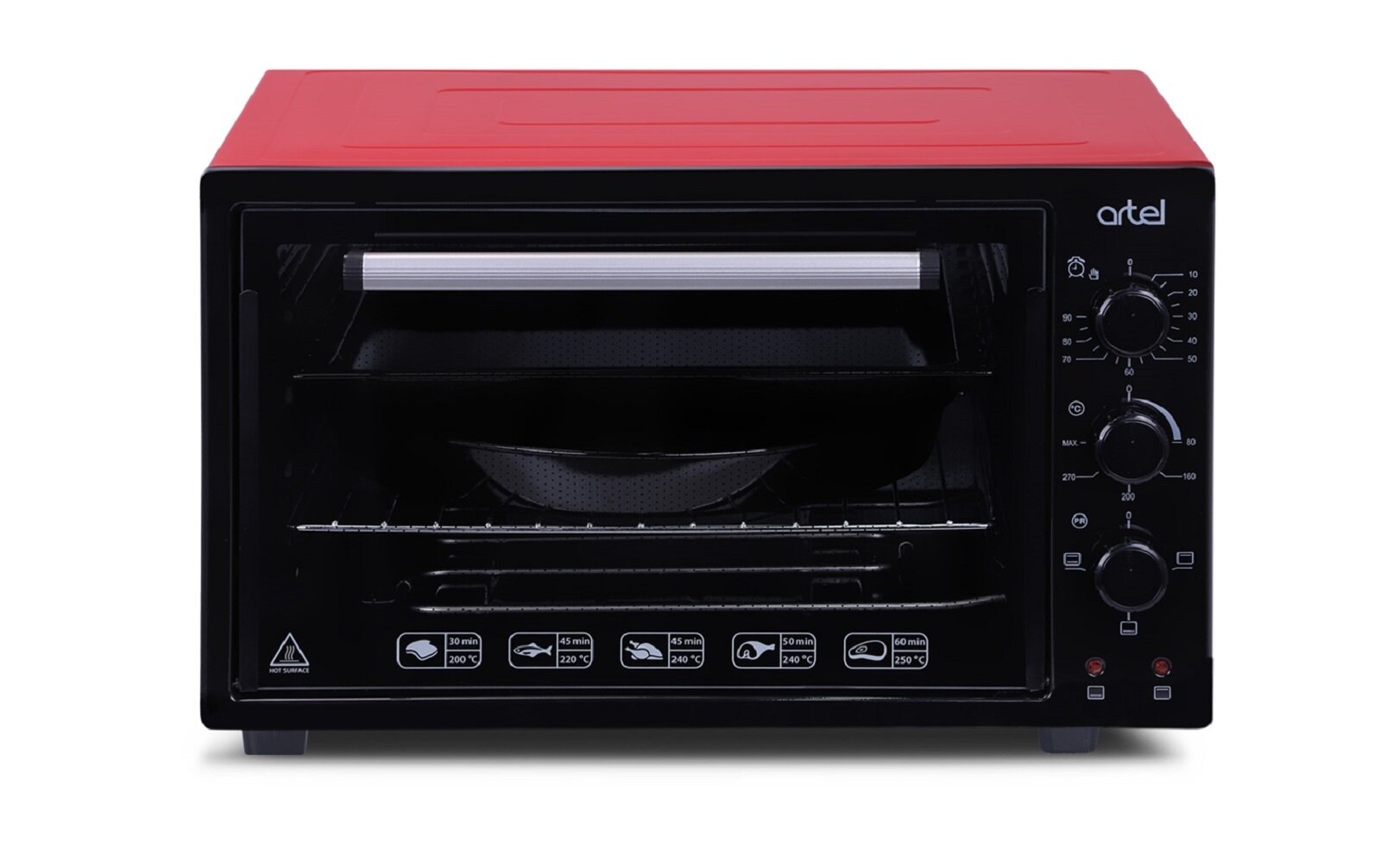 Modes: bottom heating, chamber volume: 36 l, control: mechanical, equipment: round baking tray, type: mini oven