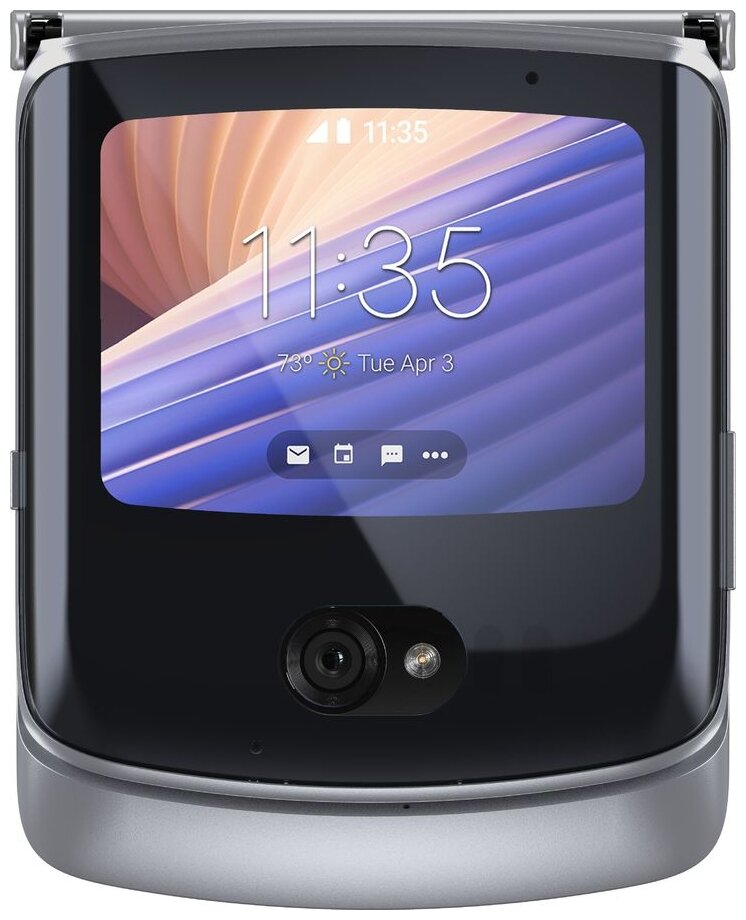 Motorola Razr 5G smartphone, TurboPower charger, USB Type-C cable, headphones, 3.5 mm headphone jack adapter, instructions, SIM card eject tool, accessory case, stand