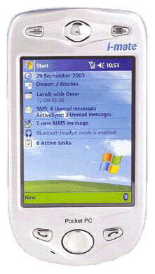 I-Mate Pocket PC, USB cradle for connecting to a desktop PC, charger, user manual