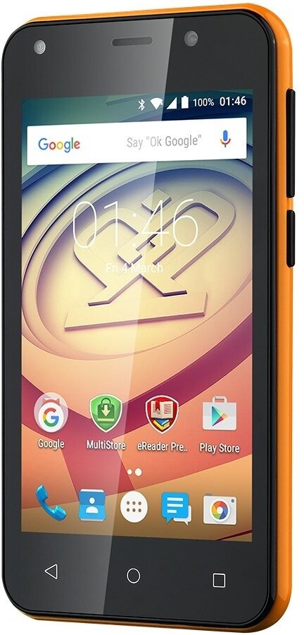 Screen diagonal: 4", number of main cameras: 1, memory: 4 GB, RAM: 0.5 GB, battery capacity: 1450 mAh, screen resolution: 800×480, memory card slot, year of announcement: 2016