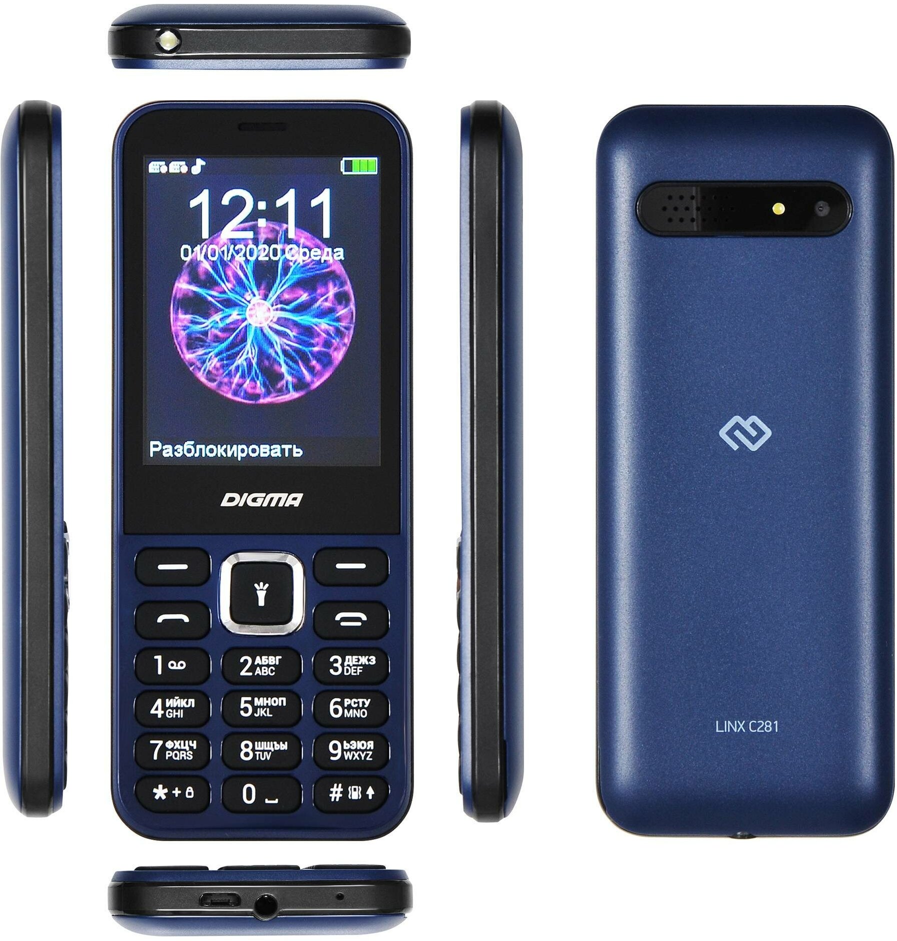 Cell phone Linx C281, AC adapter, User manual, Warranty card.
