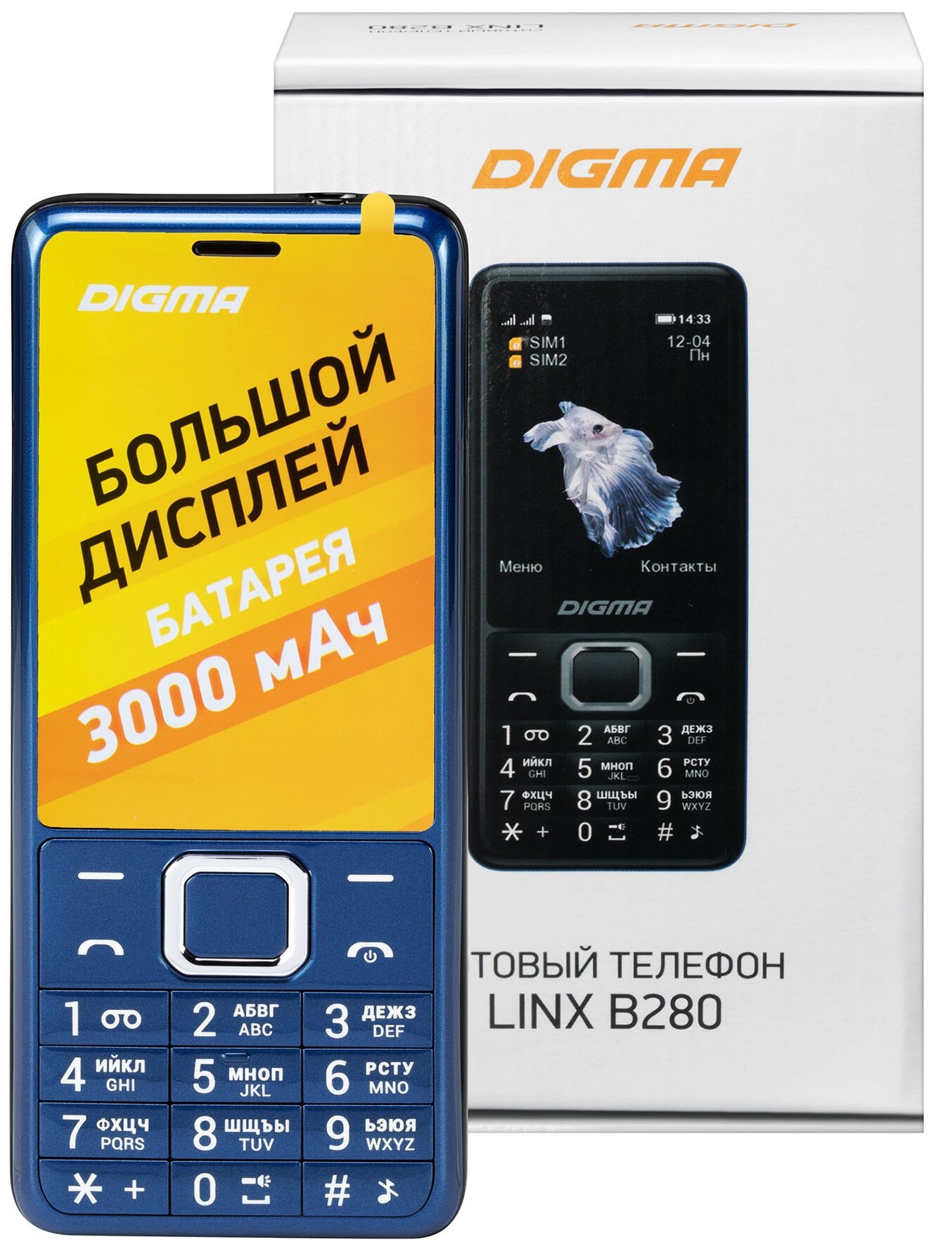 Cell phone DIGMA LINX B280, power adapter, user manual, warranty card