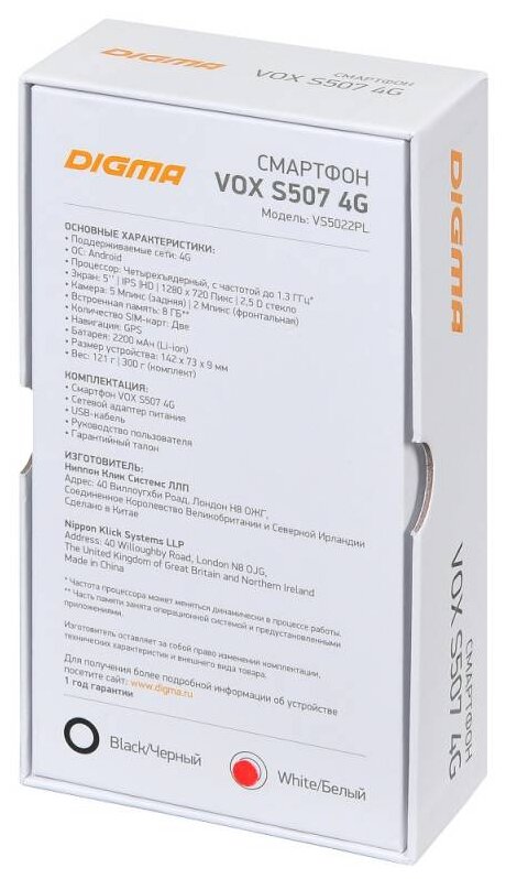Screen diagonal: 5, number of main cameras: 1, memory: 8 GB, RAM: 1 GB, battery capacity: 2200 mAh, screen resolution: 1280×720, 4G LTE, memory card slot
