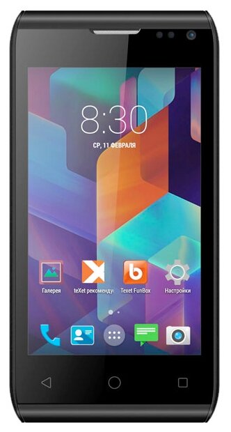Screen diagonal: 4, number of main cameras: 1, memory: 4 GB, RAM: 0.5 GB, battery capacity: 1400 mAh, screen resolution: 800×480, memory card slot