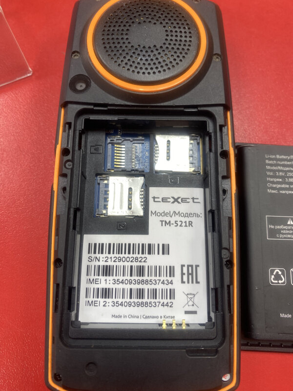 Mobile phone teXet TM-521R, battery, charger, USB cable, instruction manual, warranty card