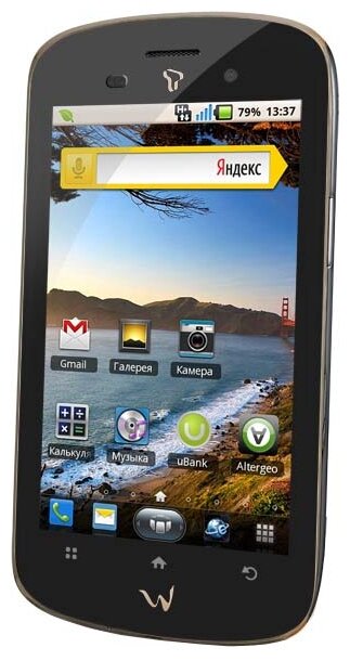 Screen diagonal: 4", number of main cameras: 1, memory: 1 GB, RAM: 0.5 GB, battery capacity: 1350 mAh, screen resolution: 800×480, memory card slot