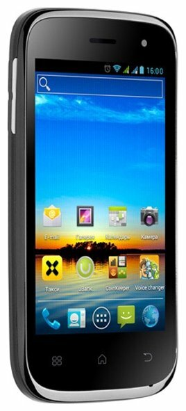 Screen diagonal: 4", number of main cameras: 1, memory: 4 GB, RAM: 0.5 GB, battery capacity: 1600 mAh, screen resolution: 800×480, memory card slot