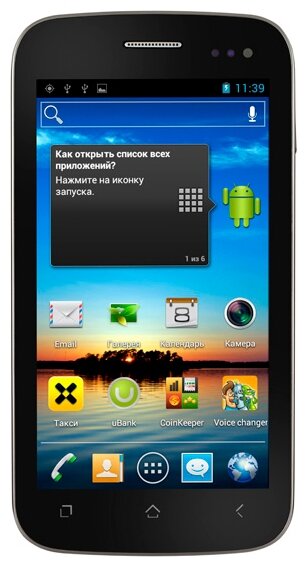 Screen diagonal: 5, number of main cameras: 1, memory: 4 GB, RAM: 1 GB, battery capacity: 2000 mAh, screen resolution: 854×480, memory card slot