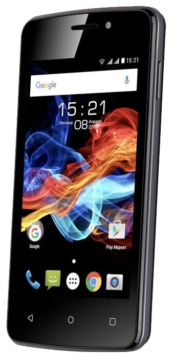 Screen diagonal: 4, number of main cameras: 1, memory: 4 GB, RAM: 0.5 GB, battery capacity: 1500 mAh, screen resolution: 800×480, memory card slot