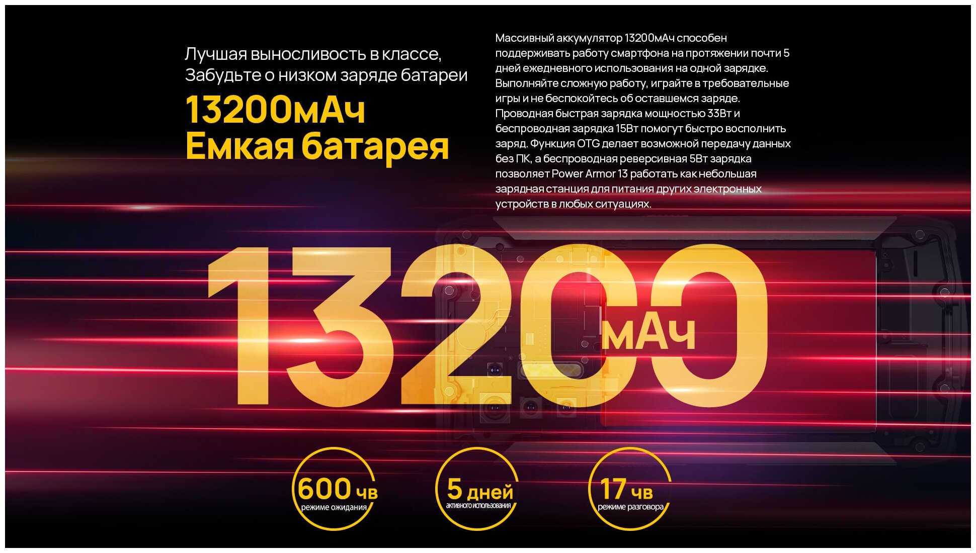 Screen diagonal: 6.81", number of main cameras: 4, memory: 128 GB, 256 GB, RAM: 8 GB, battery capacity: 13200 mAh, screen resolution: 2400x1080, 4G LTE, memory card slot