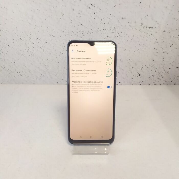 Screen diagonal: 6.50", number of main cameras: 2, memory: 32 GB, RAM: 2 GB, battery capacity: 5000 mAh, screen resolution: 1600x720, screen refresh rate: 60 Hz, memory card slot