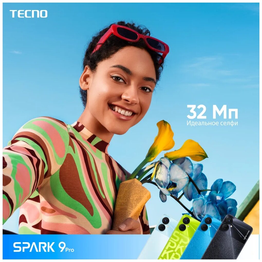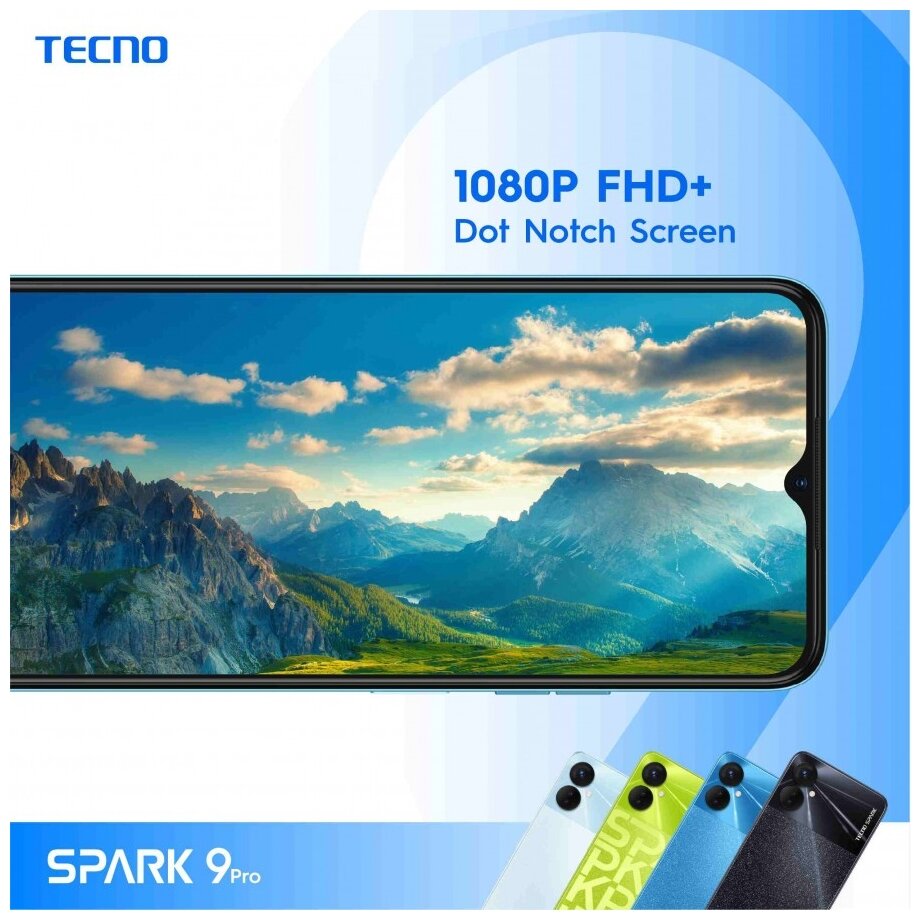 Spark 9 Pro smartphone, charger, USB Type-C cable, case, documentation