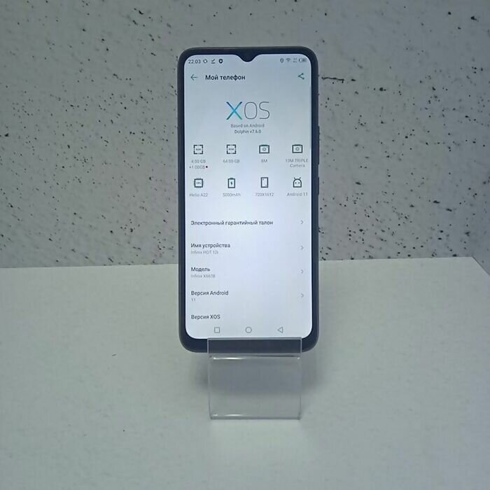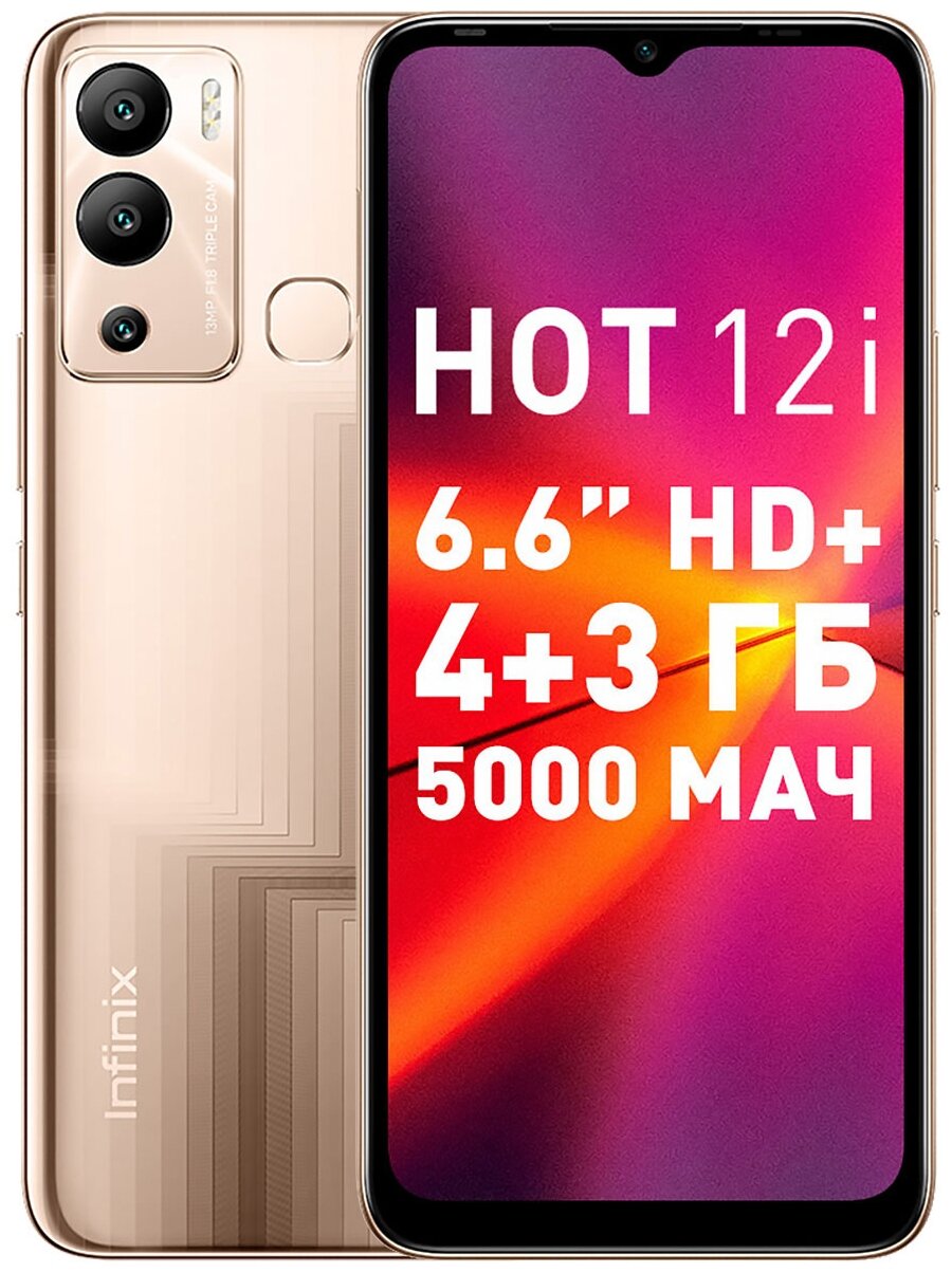 Screen diagonal: 6.60", number of main cameras: 3, memory: 64 GB, RAM: 4 GB, battery capacity: 5000 mAh, screen resolution: 1612x720, screen refresh rate: 60 Hz, memory card slot