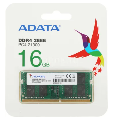 Type: DDR4, capacity of one module: 16 GB, clock frequency: 2666 MHz, form factor: SODIMM, number of modules included: 1 pc., CL: 19