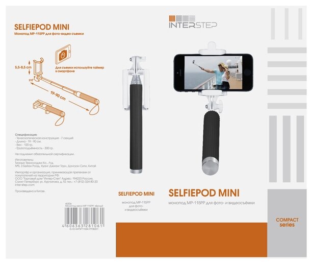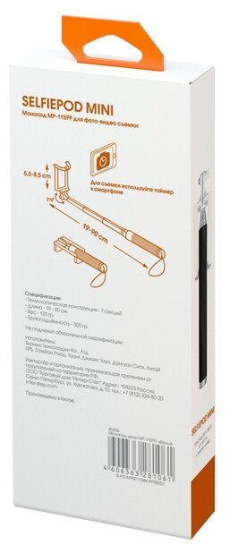 Monopod for selfie, maximum length 900 mm, weight 120 g