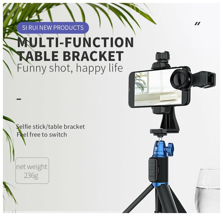Tripod, bluetooth, maximum length 580 mm, weight 230 g