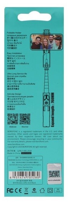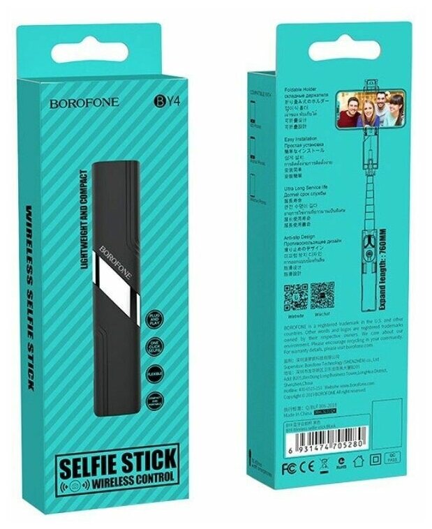 Monopod for selfie, bluetooth, maximum length 760 mm, weight 76 g
