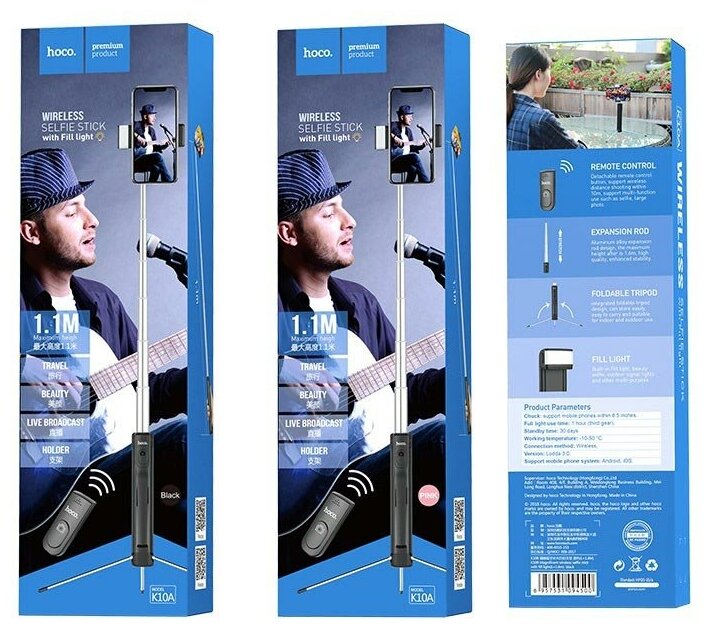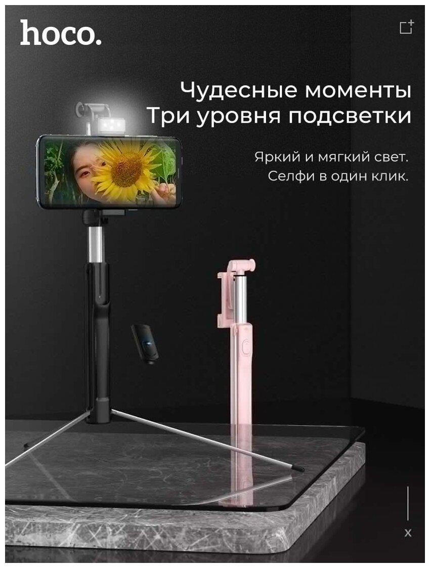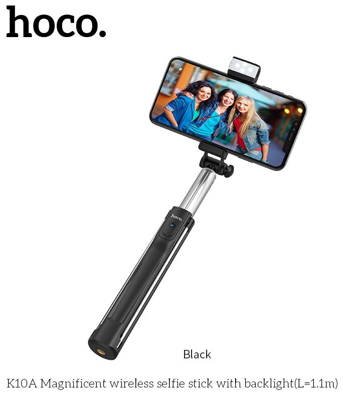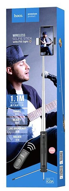 Hoco K10A Lighted Bluetooth Phone Tripod with Remote - Black