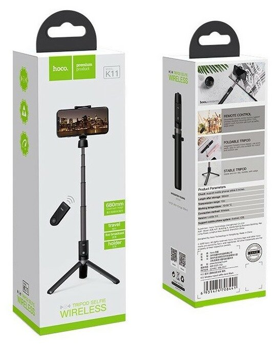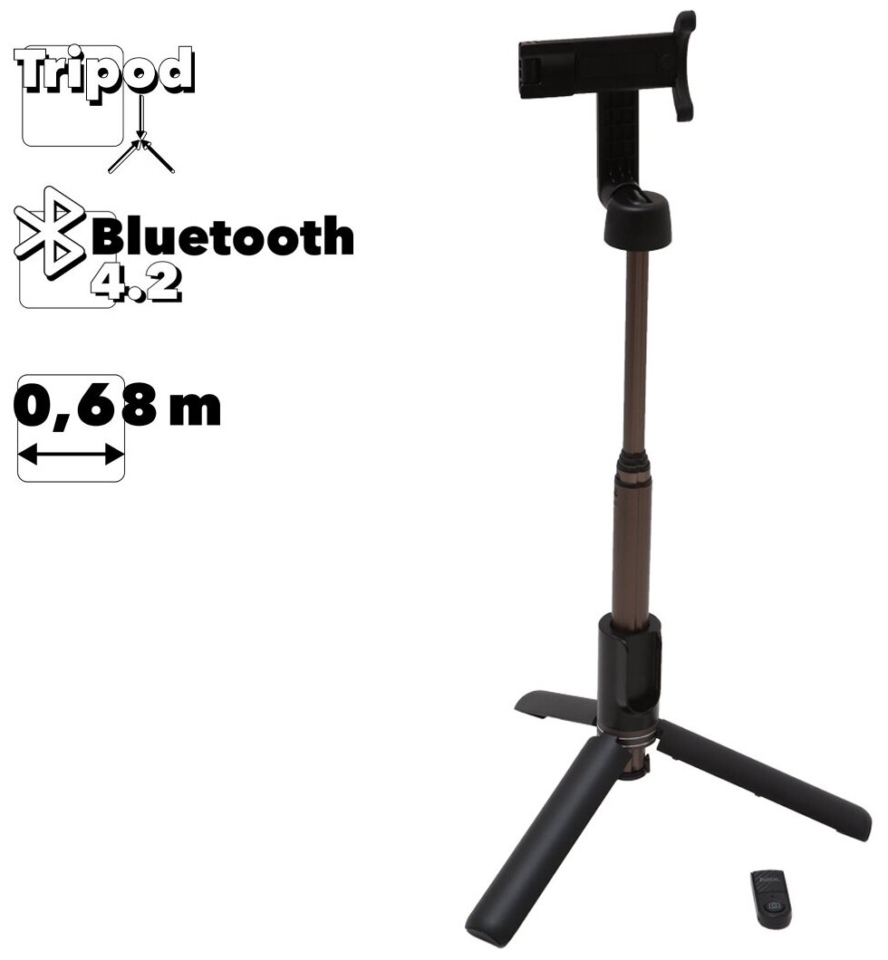 Tripod, bluetooth, maximum length 680 mm, weight 158 g