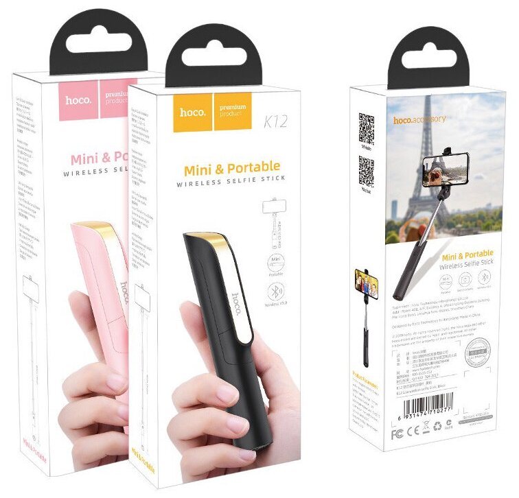 Monopod for selfie, bluetooth, maximum length 600 mm, weight 96 g