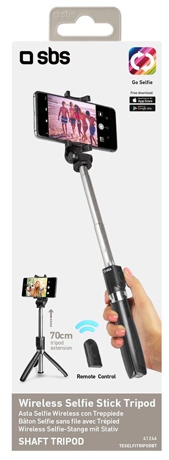 Tripod/monopod, bluetooth, maximum length 700 mm, weight 155 g