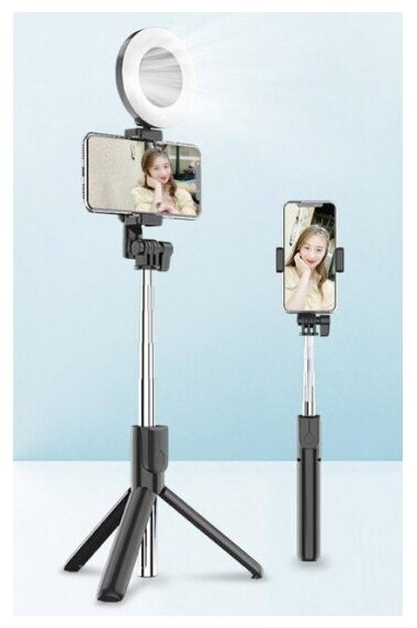 Selfie tripod J861 with one ring light Black