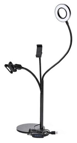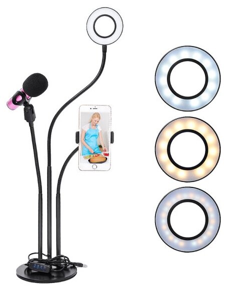 Flexible phone and microphone holder with ring light 3 in 1 Black