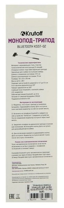 Tripod/monopod, bluetooth, maximum length 700 mm, weight 138 g