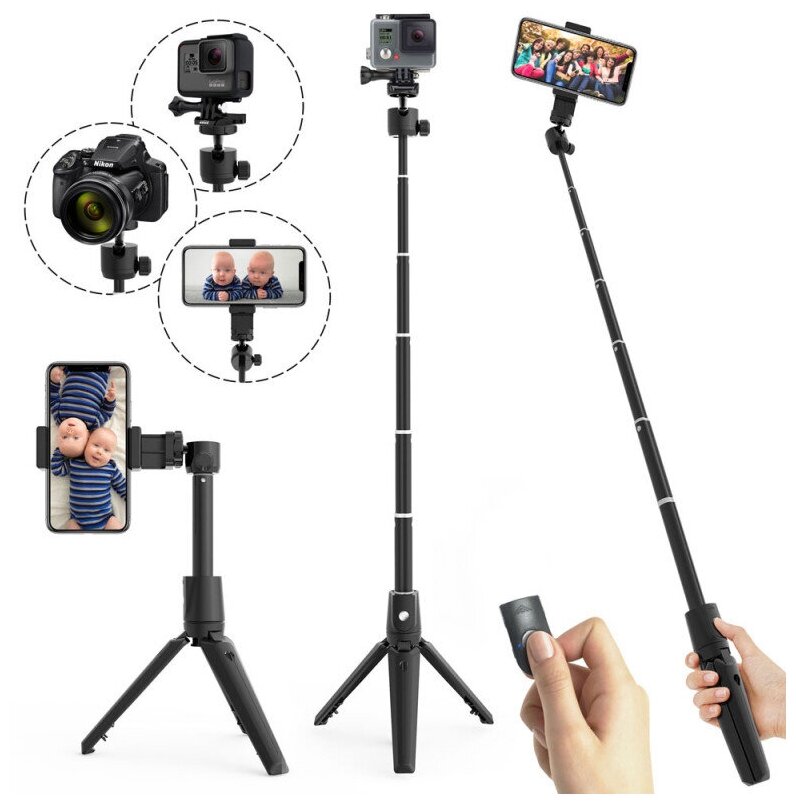 L03 smartphone monopod tripod with bluetooth remote control, 270' rotation, desktop/floor, black