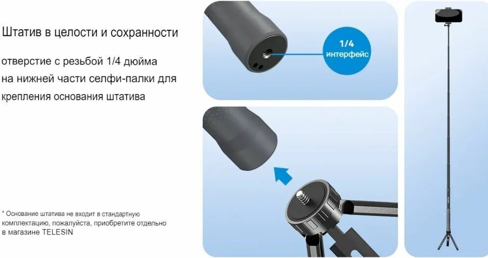 Monopod for selfie, bluetooth, maximum length 3000 mm, weight 227 g