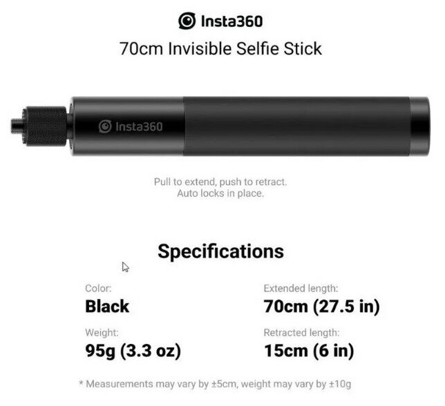Monopod Insta 360 One Selfie Stick Black 70cm